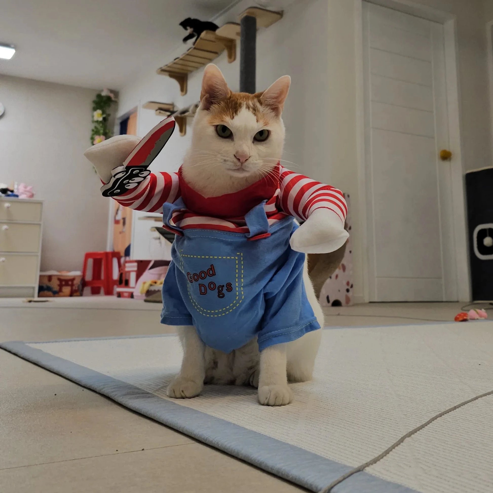 ๐ Chucky Costume Halloween โ Knife-Wielding Pet Outfit