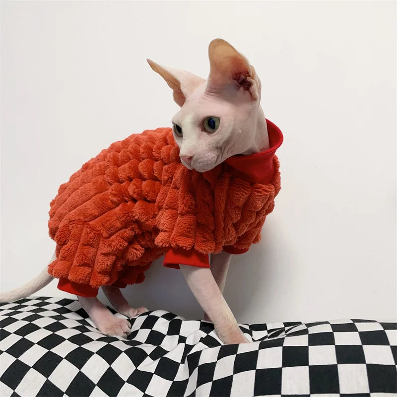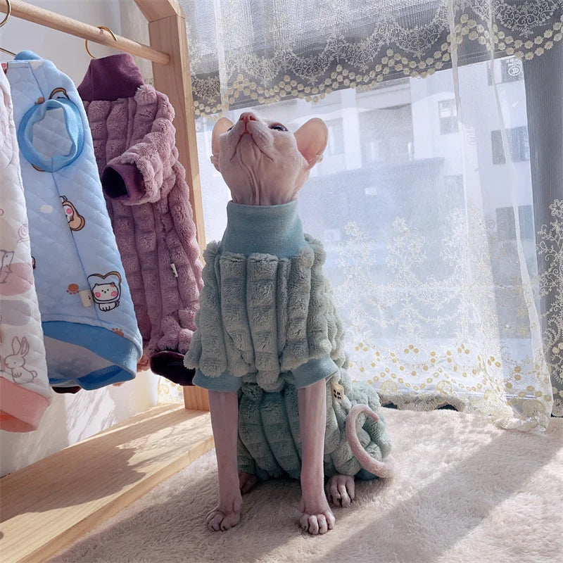 Unlike other breeds, **Sphynx cats don’t have fur to keep them warm**, making cozy clothing a must! This sweater not only keeps them comfortable but also adds a stylish touch to their wardrobe.